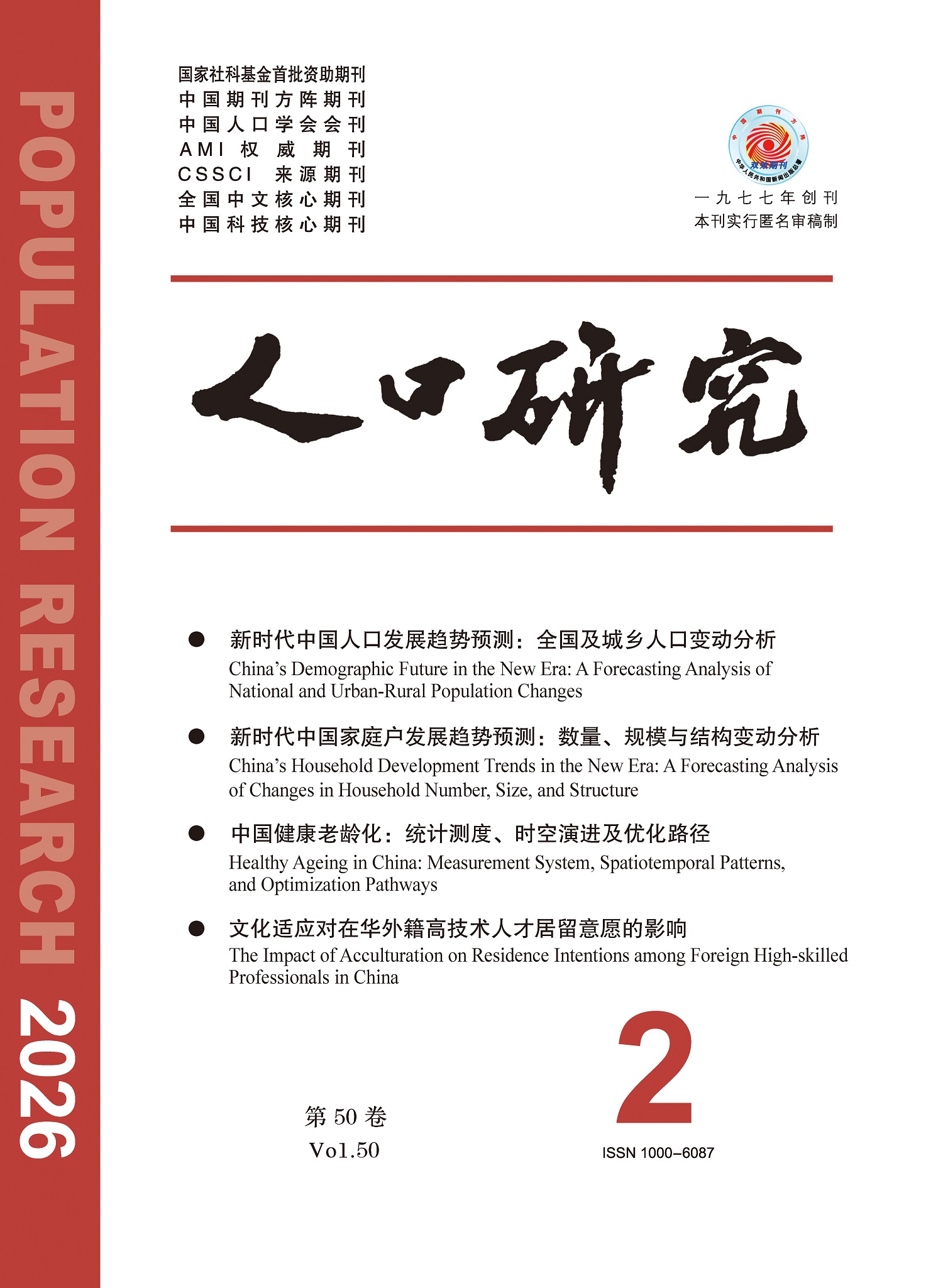 Administrative Institution: Ministry of Education, PRC Executive Institution: Renmin University of China Editorial Institution: Editorial Board of Population Research , Center for Population and Development Studies, Renmin University of China Chief Editor: Zhai Zhenwu Deputy Editor: